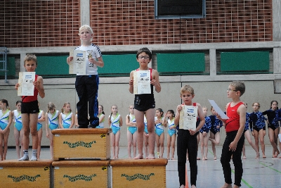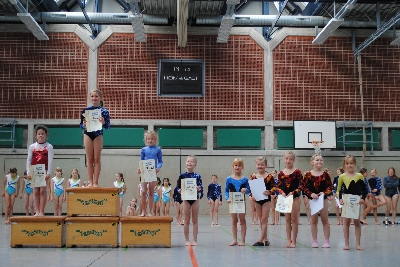 Marie Steinbrück und Lara Sankör starteten ein internes Duell bei dem Marie mit 48,20 Punkten nur um 0,4 besser war als Lara. Marie belegte den 6. Platz und Lara schaffte einen 7. Platz. Eileen Knackstedt und Lilli Birkefeld lagen nur 0,1 Punkte auseinander und belegten Platz 8 und 9. Trainer Werner Bohnen konnte gegenüber dem Vorjahr eine deutliche Steigerung bei den Turnerinnen erkennen. Leider lässt immer noch das Turnen der Jungen zu wünschen übrig. Auch hier wäre eine größere Teilnehmerzahl wünschenswert.