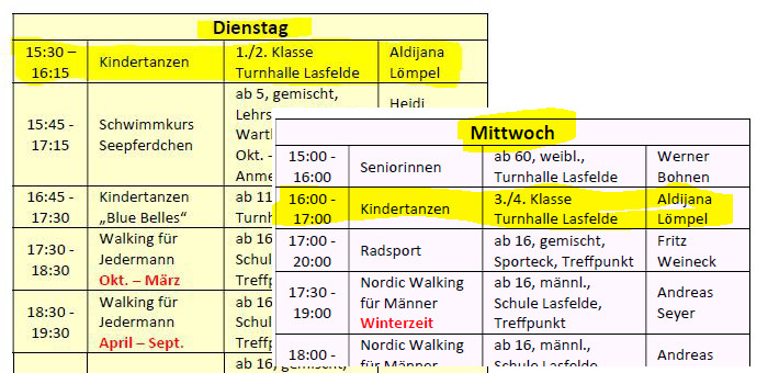 Das Training findet jeweils in der Turnhalle Lasfelde statt.
