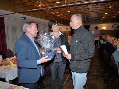 Reiner Arend wird für die langjährige Arbeit als Wanderwart mit einem Präsent geehrt.