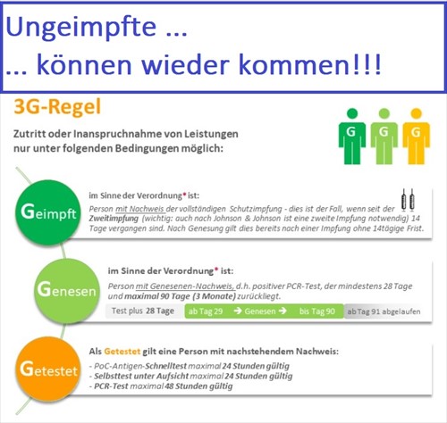 - Kein Zutritt in Sporthallen ohne 3G möglich - bis auf die oben erwähnten Ausnahmen.