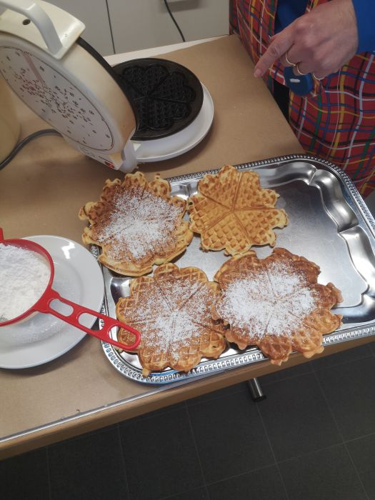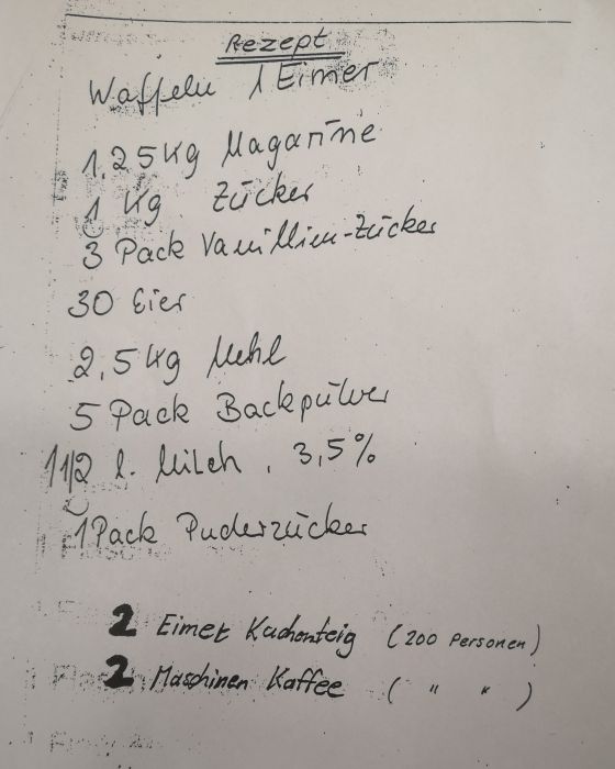 Jürgen und ich setzen uns gegen halb drei an die Kasse und schauen alle zwei Minuten in den Hof und hoffen, dass Gäste kommen. Das sieht mau aus. Aber kurz vor drei kommen die Besucher in Scharen. Am Ende sind wir über 100 Kinder und über 100 Erwachsene in der Halle. Um vier Uhr sind die Waffeln alle. Beim nächsten Mal können wir also drei Eimer Waffelteig anrühren. Fanta ist noch schneller aus.