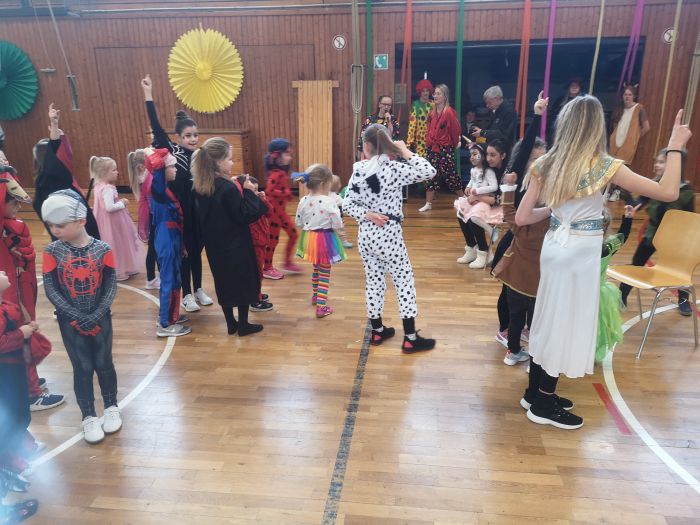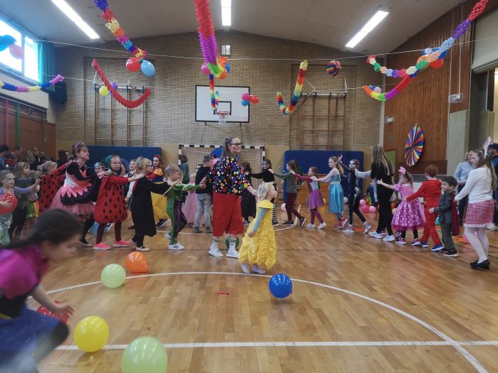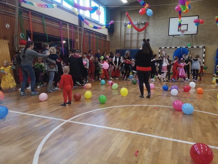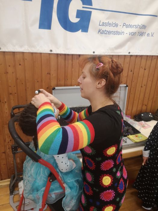 Was schreibt man in einen Artikel über Kinderfasching? Ich mache das diesmal anders. Es ist Sonntagmorgen. Christina und ich fahren in die Turnhalle, um für den Kinderfasching aufzubauen. Viele der jungen Leute sind da: Carl, Felix, Hannah, außerdem Hannahs Papa Rainer, Felix' Papa Mike. Natürlich sind auch die Männer der TG da. Cornelia ist mit der ganzen Familie da. Cornelia, ihre Mädchen und ich blasen Luftballons auf. Mit Jürgens Profi-Bohrmaschine von Bosch rühre ich zwei Eimer Waffelteig an. Birgit schüttet die Zutaten hinein. Eine der jungen Helferinnen kommt spät. Ich denke mir, dass sie sehr gealtert ist: Sie war in Harriehausen zum Fasching.