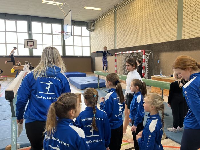 Acht Turnerinnen der TG LaPeKa nahmen an diesem Wochenende an den Wettkämpfen teil. Lia Schnella und Celina Kohlrausch begleiteten die Mädchen.