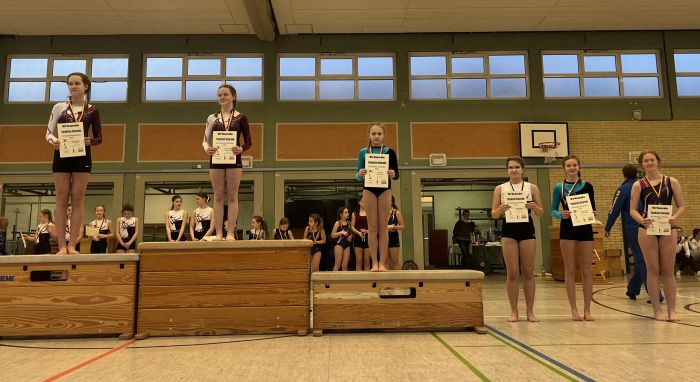 Die Mädchen turnten gut, doch leider konnten wir uns gegen den TV GutsMuths Scharzfeld, den TVG Hattorf und den MTV Herzberg nicht an die Spitze kämpfen. Eine Turnerin im Jahrgang 2005 konnte sich mit 6 weiteren Mädchen insgesamt in der Riege den 3. Platz erkämpfen. Die anderen Mädchen der TG LaPeKa aus dieser Riege belegten die Plätze 4, 6 und 7.