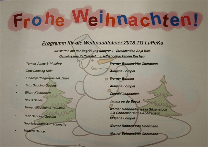 Am 2. Advent fand der diesjährige TG-Turnnachmittag statt. Das interessante und umfangreiche Programm hatte unser Sportlehrer Werner Bohnen zusammen mit unserer Sportwartin Vita Obermann zusammengestellt.